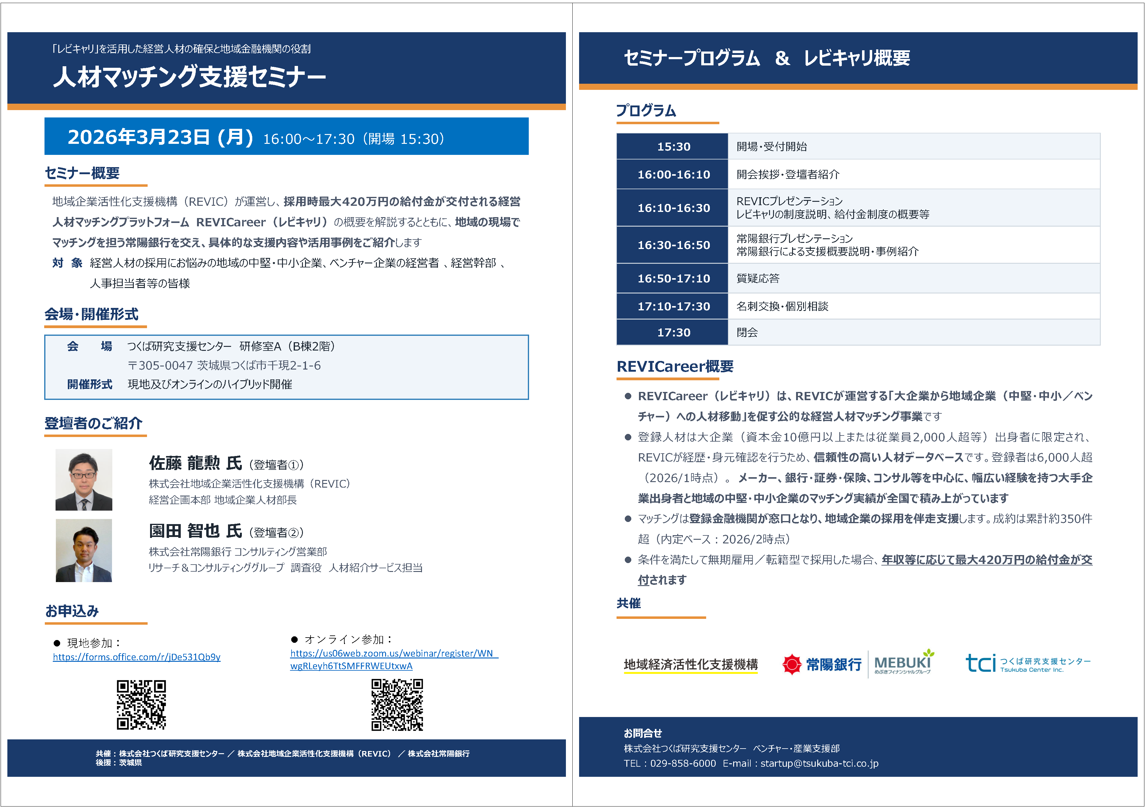 共催:株式会社つくば研究支援センター / 株式会社地域企業活性化支援機構(REVIC) / 株式会社常陽銀行